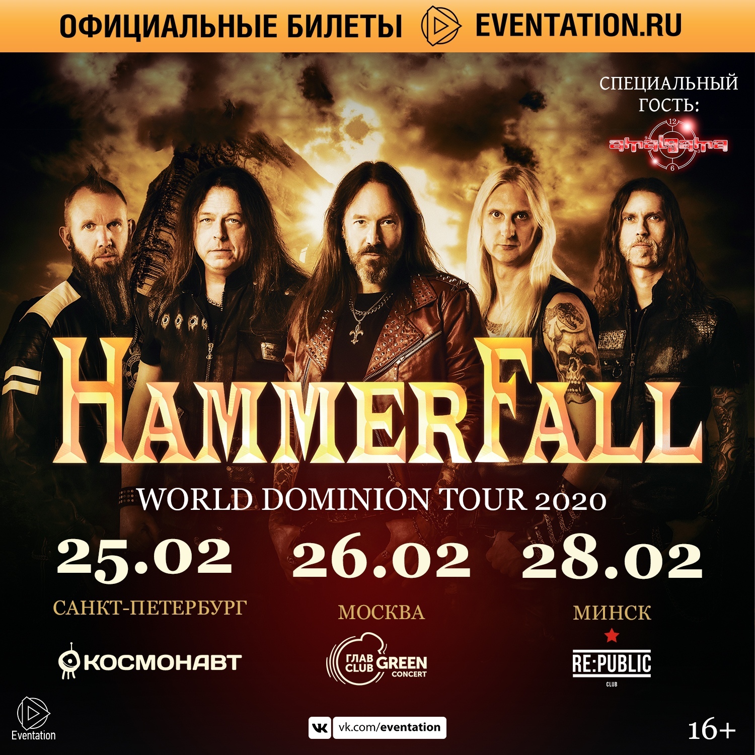 Специальным гостем концертов HAMMERFALL станет группа AMALGAMA. Группы совместно сыграют в Санкт-Петербурге, Москве и Минске. Ждем Вас, друзья, на наших концертах!